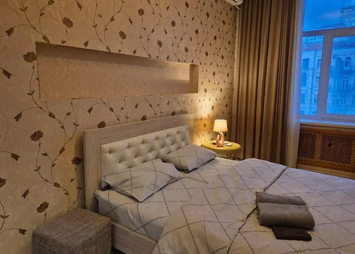 Апартаменты расположены в районе Печерский, всего в 350 метрах от Бессарабского рынка и в паре минут ходьбы от Хоральной синагоги Бродского. Прогулка в центр Киева займет 15 минут. Всего в 1 км можно увидеть парк Тараса Шевченко.
